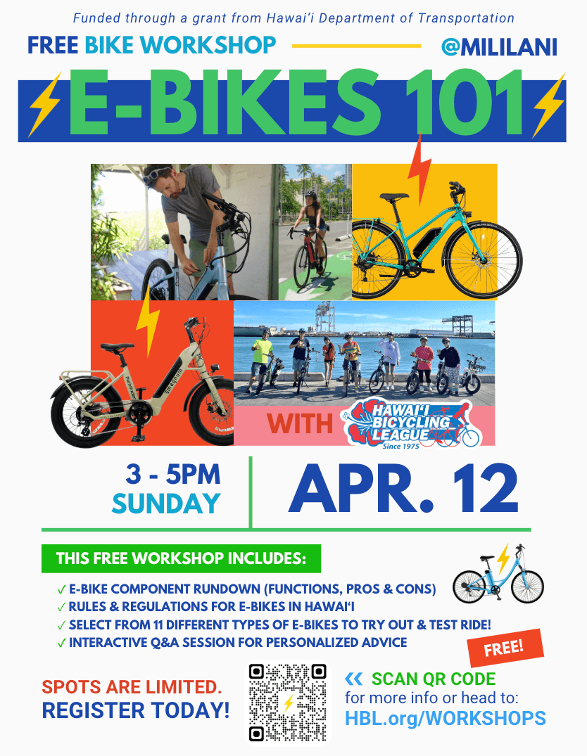 E-Bikes 101 - On-Bike Free Workshop with Hawai‘i Bicycling League