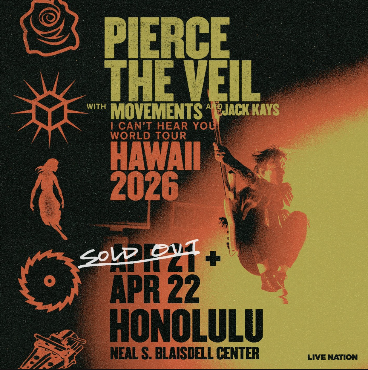BAMP Project presents Pierce The Veil live with special guests Movements & Jack Kays at the Blaisdell Arena on April 22, 2026. This event welcomes all ages.