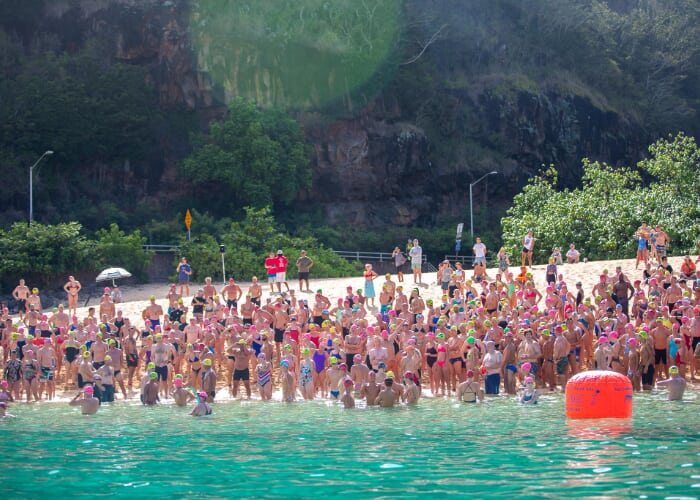 The North Shore Swim Series is a 4 race swim series (plus a 5k/10k endurance swim one week after the final series race) that happens in the summer on the famous North Shore of Oʻahu. The ‘7-mile miracle’ as this stretch of sandy beaches is known in the surf world, is transformed when summer rolls around into the world’s largest salt-water swimming pool. The giant winter waves at Waimea Bay and Pipeline are replaced with crystal clear water & super calm conditions. Early Entry for individual swims is available at Active.com (search ‘Aloha Salads’) for a fee of $75.00 which includes a swim cap, t-shirt (no guarantee of t-shirts for late entries but we try!), awards for top finishers and age group winners, plus ‘heavy snacks’ and hydration courtesy of HIDrate Electrolytes.