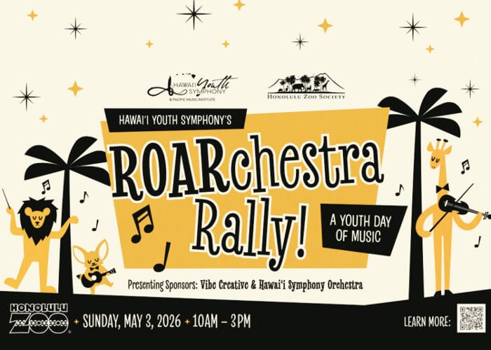 Hawaiʻi Youth Symphony \(HYS\) is readying a unique and joyful experience that’s sure to resonate with music and animal lovers, conducted in collaboration with the Honolulu Zoological Society and made possible with support from presenting sponsors Vibe Creative and Hawaiʻi Symphony Orchestra. HYS’ ROAR-chestra Rally: A Youth Day of Music at the Honolulu Zoo will be held on May 3, 2026, showcasing performances from more than 500 HYS students representing dozens of public, home, charter, and independent schools across the state. The event will feature full symphony orchestras, jazz and chamber groups, string orchestras, and ʻukulele ensembles, enabling Zoo attendees to take in the sounds of some of the finest youth musicians in the country, all while exploring the grounds of a living concert hall. Access to all the ROARchestra Rally performances, spread throughout the day from 10:30 a.m. – 3 p.m., will be included with admission to the Zoo—where guests can venture through 42 acres alongside 1,200 wondrous animals and specialized habitats. The ROARchestra Rally may even connect with a larger audience beyond the attendees! Researchers have observed that music doesn’t just move people, with gentle music known to invite chimpanzees to sway, birds to vocalize in response, and others throughout the animal kingdom to be drawn to its sound. Tickets and zoo memberships are available for purchase onsite and online at www.honoluluzoo.org. Additional savings will be offered for kamaʻaina and active U.S. military families, with tickets priced at $10 for adults and $6 for children \(ages 3-12\). General admission is $21 for adults and $13 for children. Admission to the Honolulu Zoo for keiki ages two and under is always free. To learn more about Hawaiʻi Youth Symphony and its work to ensure Music is a Right for all of Hawaiʻi’s young people, visit https://www.hiyouthsymphony.org.