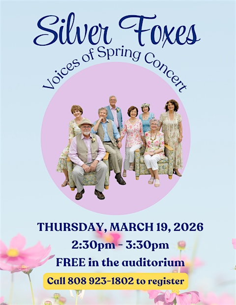 Join us for Silver Foxes: Voices of Spring, where wisdom meets fun in a vibrant in-person gathering!